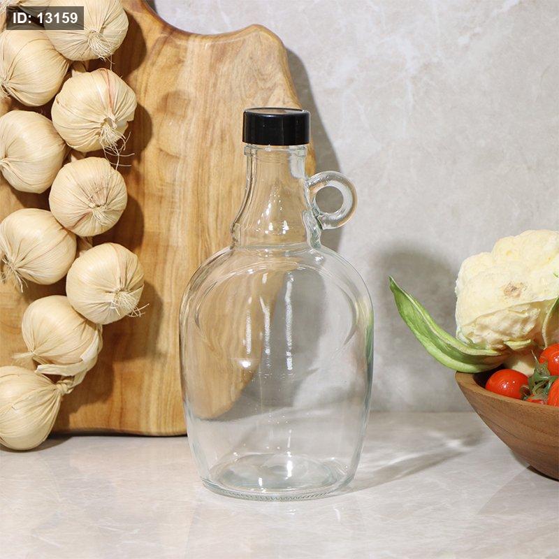 قنينة زيت زجاج نمرة 3 شكل برميل بيد غطا بلاستك لف EL130/6 =ط57