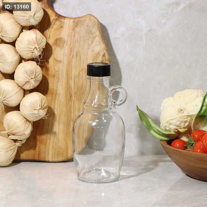 قنينة زيت زجاج نمرة 2 شكل برميل بيد غطا بلاستك لف EL130/7 =ط57