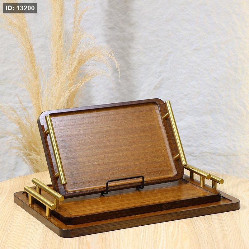طقم صواني مستطيل/3 خشب يدين مقبض ستانلس ذهبي EL9/5 =ط58
