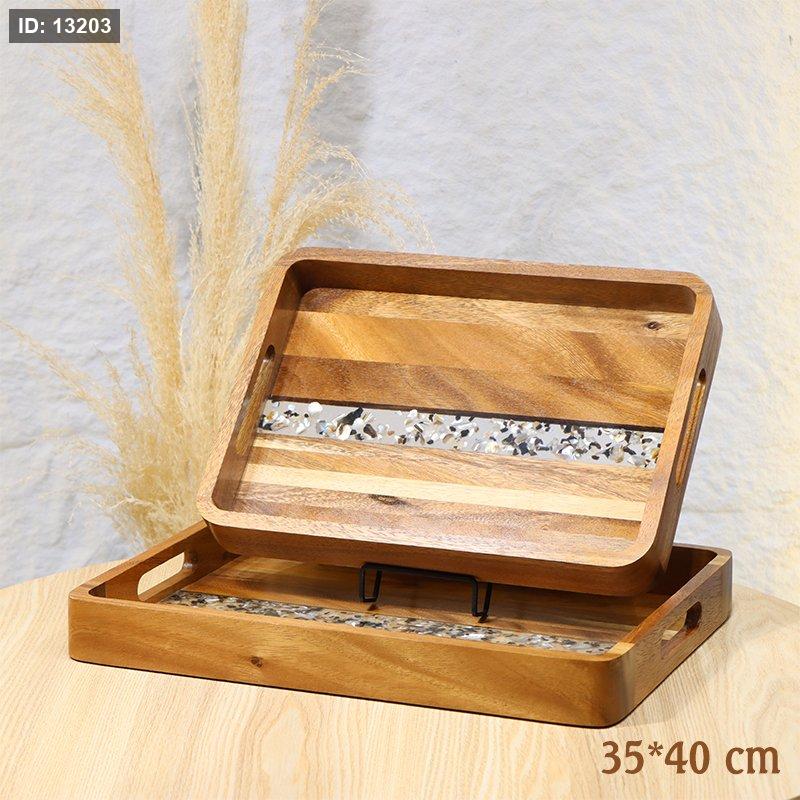 طقم صواني مستطيل/2 خشب بامبو 40+35سم وجه نصف ريزن EL9/8 =ط58
