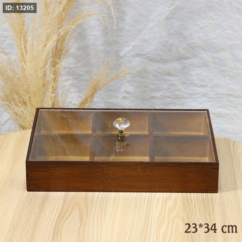 مضيفة مستطيل مقسم 6عين خشب بامبو 34*23سم غطا اكرلك شفاف EL9/10 =ط58