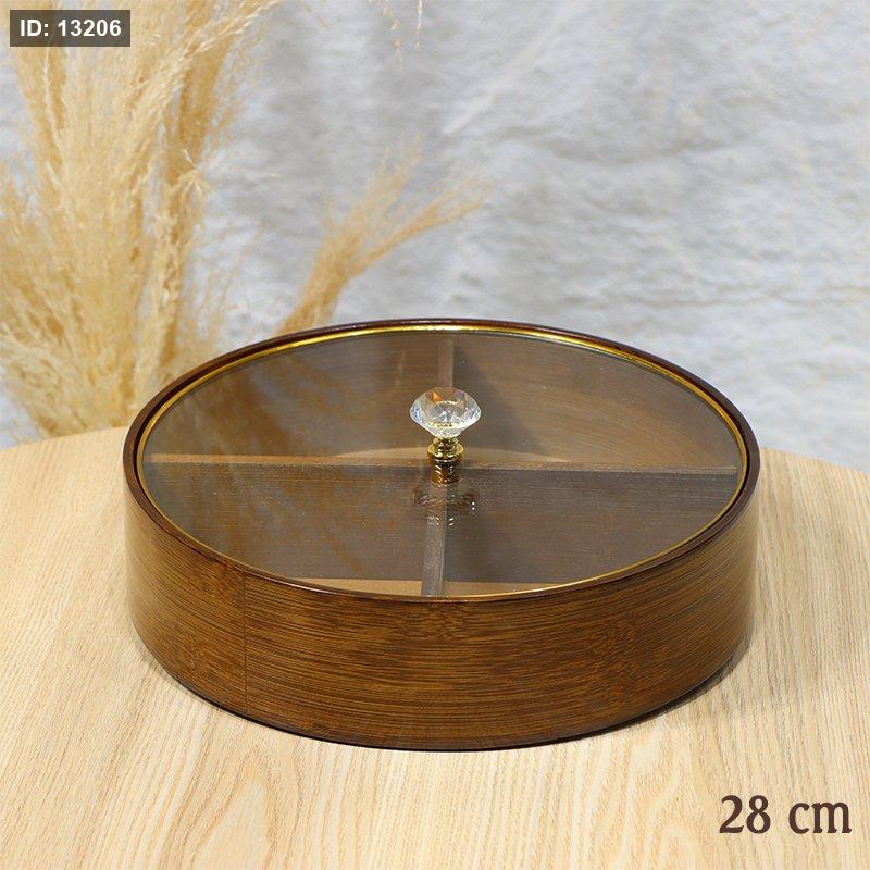 مضيفة مدور مقسم 4عين خشب بامبو 28سم غطا زجاج حيف ذهبي EL9/11 =ط58