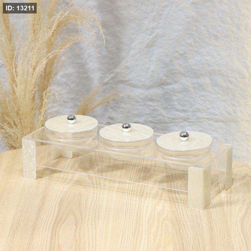 طقم/4 ستاند مستطيل +3 مضايف مدور اكرلك شفاف غطا ريزن بيج EL37/2 =ط58