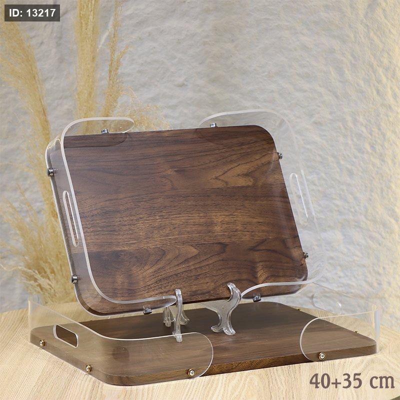طقم صواني مستطيل /2 خشب بامبو 35+40سم حيف ويدين اكرلك شفاف EL37/8 =ط58