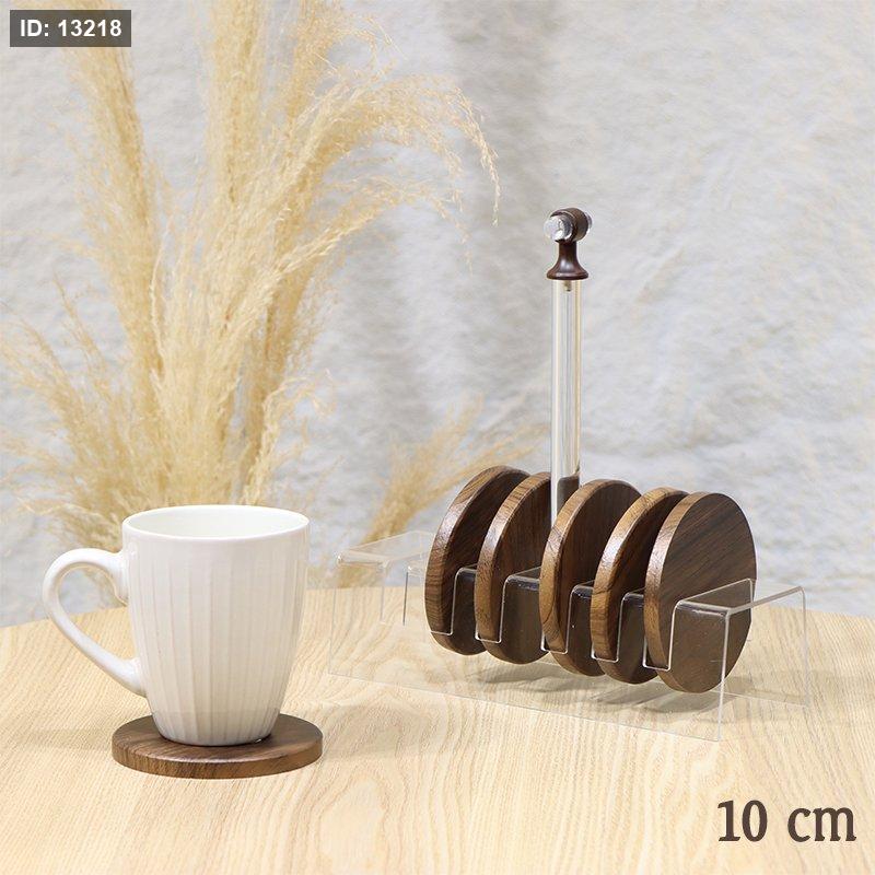 طقم/7 ستاند اكرلك +6 كوستر خشب مدور 10سم بامبو مسكة اكرلك EL37/9 =ط58
