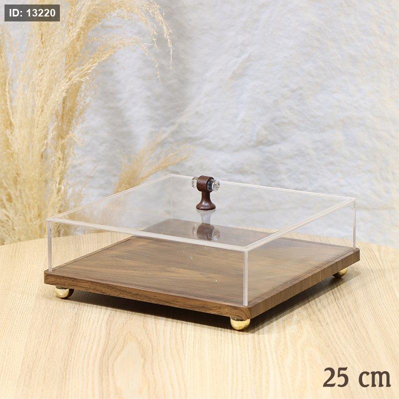 مضيفة مربع 25سم قاعدة خشب جوانب اكرلك شفاف ارجل طابة ذهبي EL37/11 =ط58