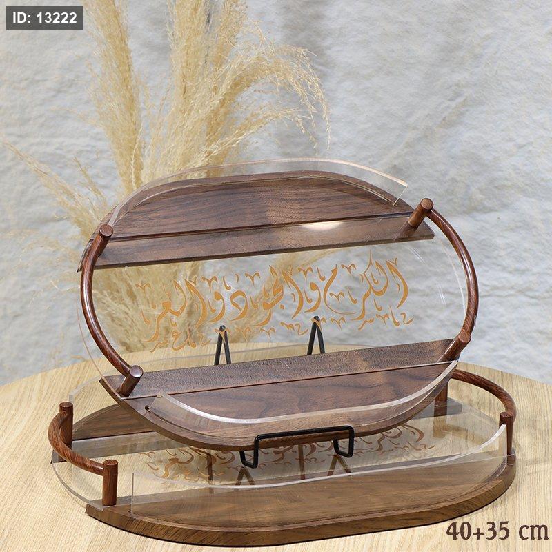 طقم صواني بيضاوي /2 خشب بامبو 35+40سم وجه نصف اكرلك شفاف EL37/13 =ط58