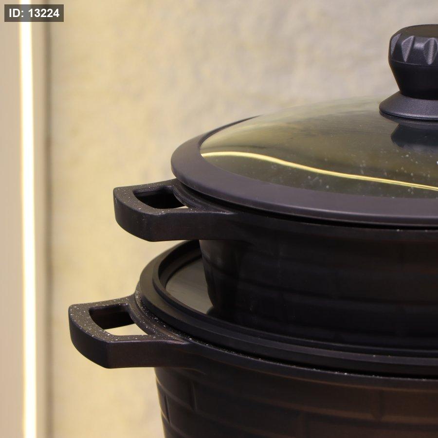 طقم طناجر/10احجام (20/24/28/32) +28سم مقلى جرانيت سكب محجر اسود EL20/2 =ط58
