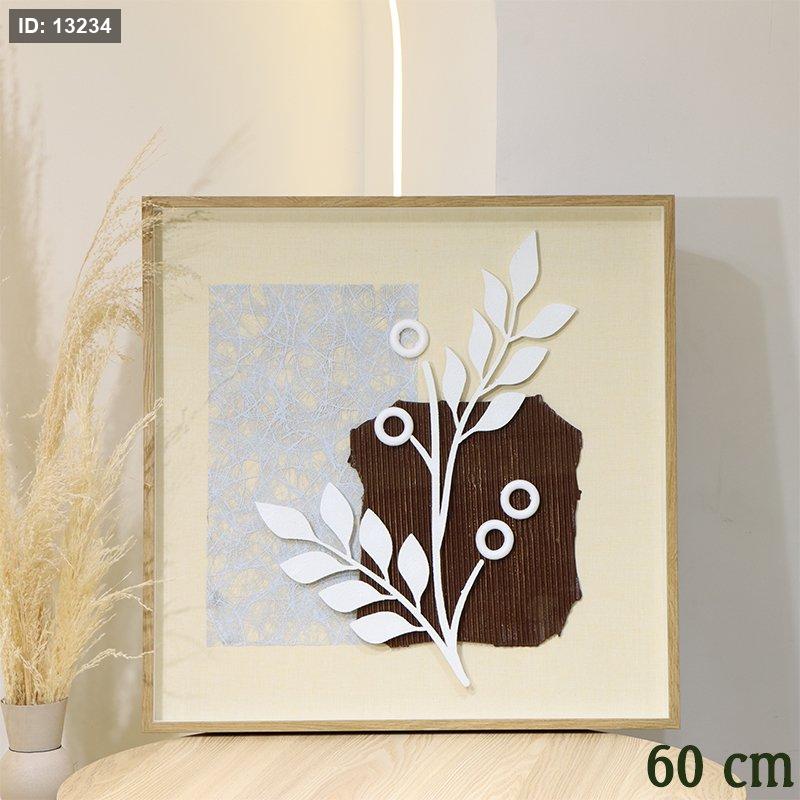 برواز مربع 60سم قماش بيج عروق شجر زجاج اطار خشب EL47/2 =ط58