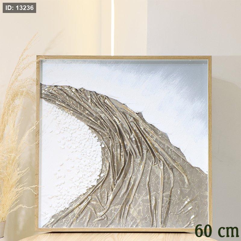 برواز مربع 60سم جبص ابيض مرسم امواج مخمل ذهبي زجاج اطار خشب EL47/4 =ط58
