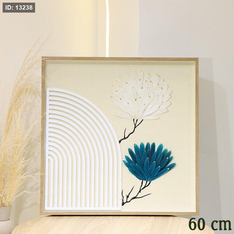 برواز مربع 60سم قماش بيج ورد ريش ابيض وتركواز زجاج اطار خشب EL47/6 =ط58
