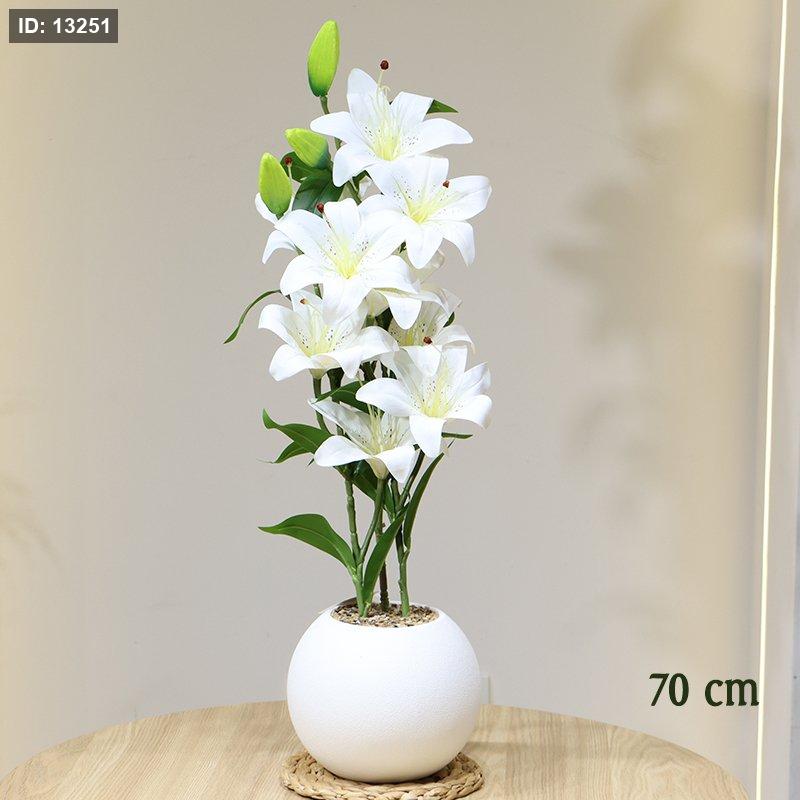قوار بلاستك طابة ورد زنبق ابيض 70سم عروق اخضر EL86/2 =ط58