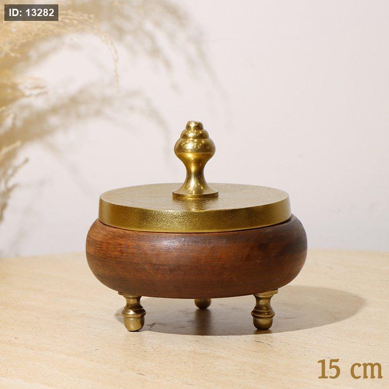 مضيفة مدور15سم خشب 8239153 مسكة وارجل نحاس هندي %ه10