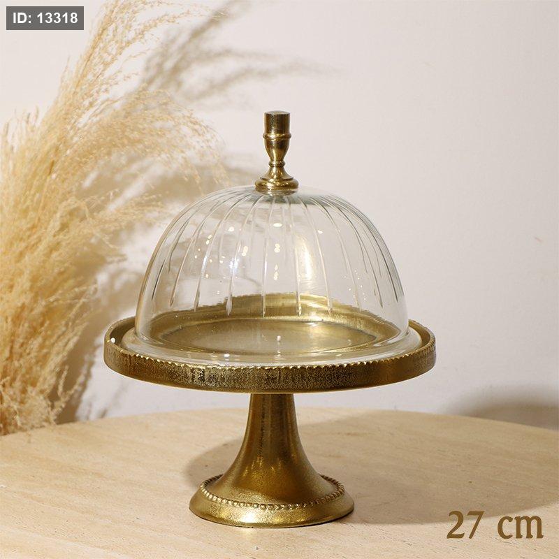 جاط كيك مدور 27سم 8239214 غطا زجاج قاعدة ورجل نحاس هندي %ه10