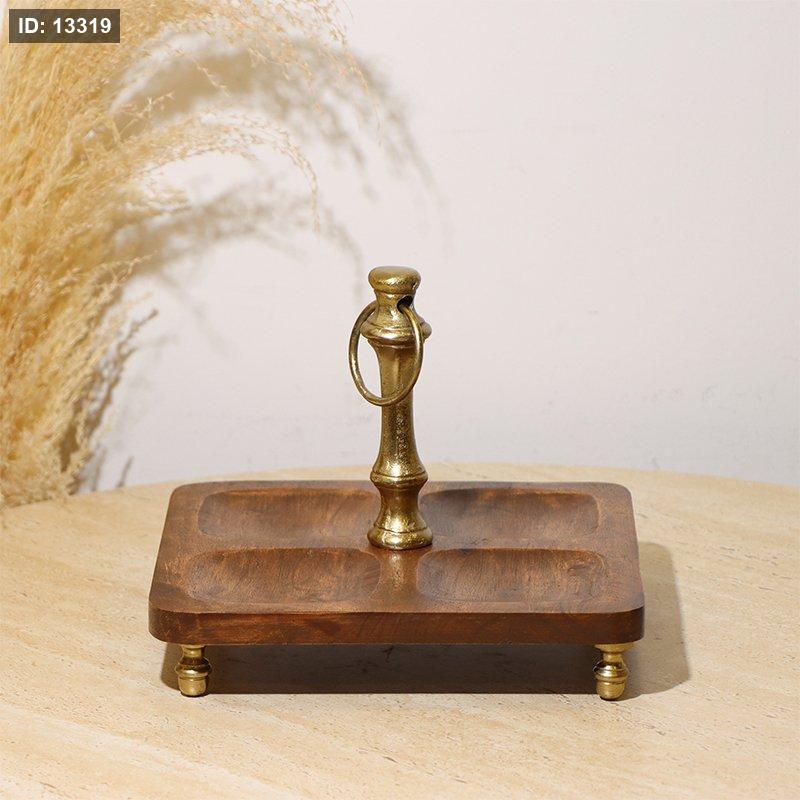 مضيفة 2 طبقة مربع نحاس هندي خشب يد حلقة 8239215 %ه10