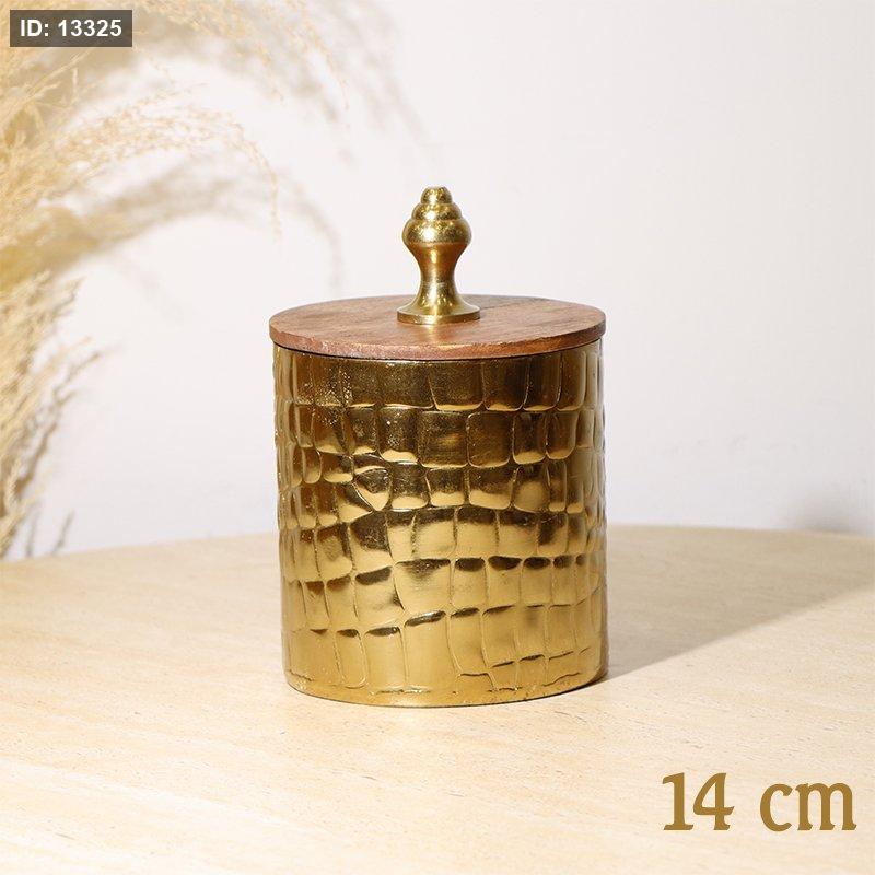 مضيفة مدور14سم نحاس مبلط 8239236 غطا خشب هندي %ه10