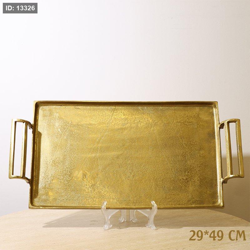 صينية مستطيل 49*29سم 8239237 نحاس ذهبي بيدين مقبض %ه10