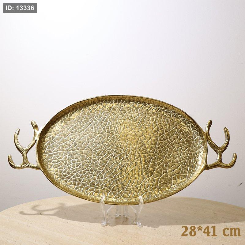 صينية بيضاوي 41*28سم 8239254 نحاس هندي بيدين قرن غزال %ه10