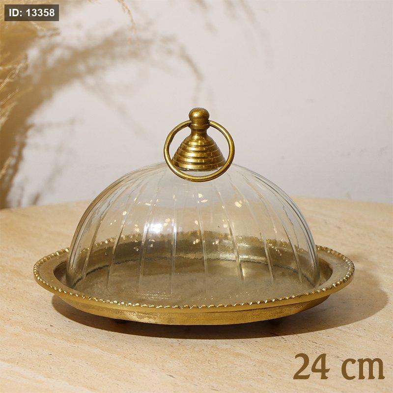 جاط كيك بيضاوي 24سم 8239121 غطا زجاج قاعدة نحاس هندي %ه10