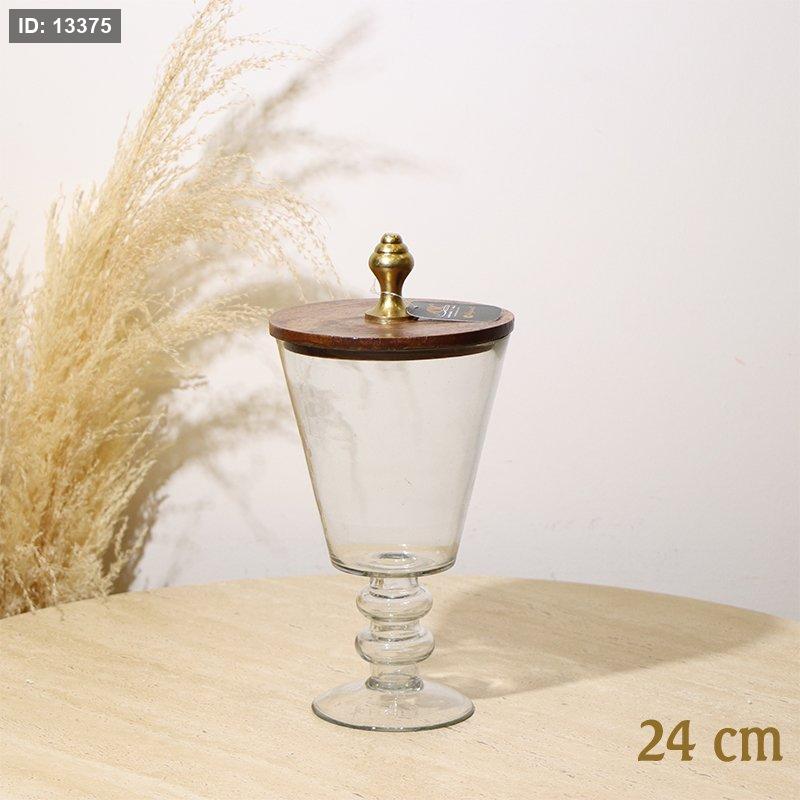 مضيفة مدور 24سم شكل كأس كبير 8239267 غطا خشب هندي مسكة نحاس هندي %ه10