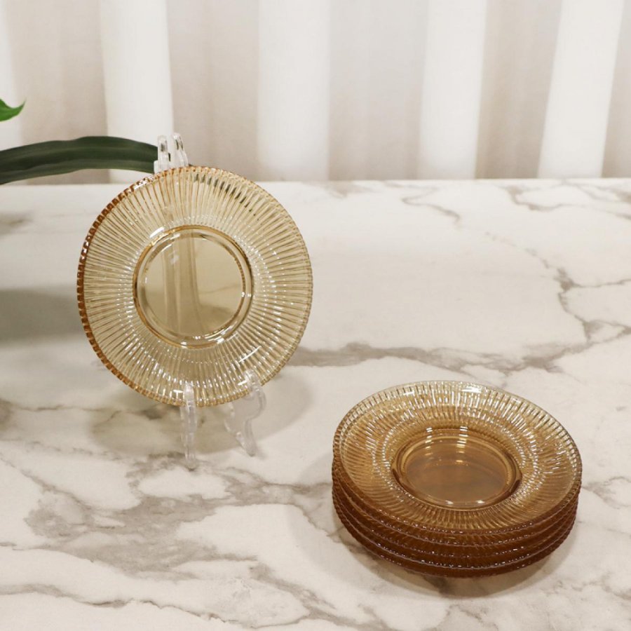 طقم استكانة 6 صحون زجاج عسلي محزز KX2136-HONEY +ب.ج+ +جG