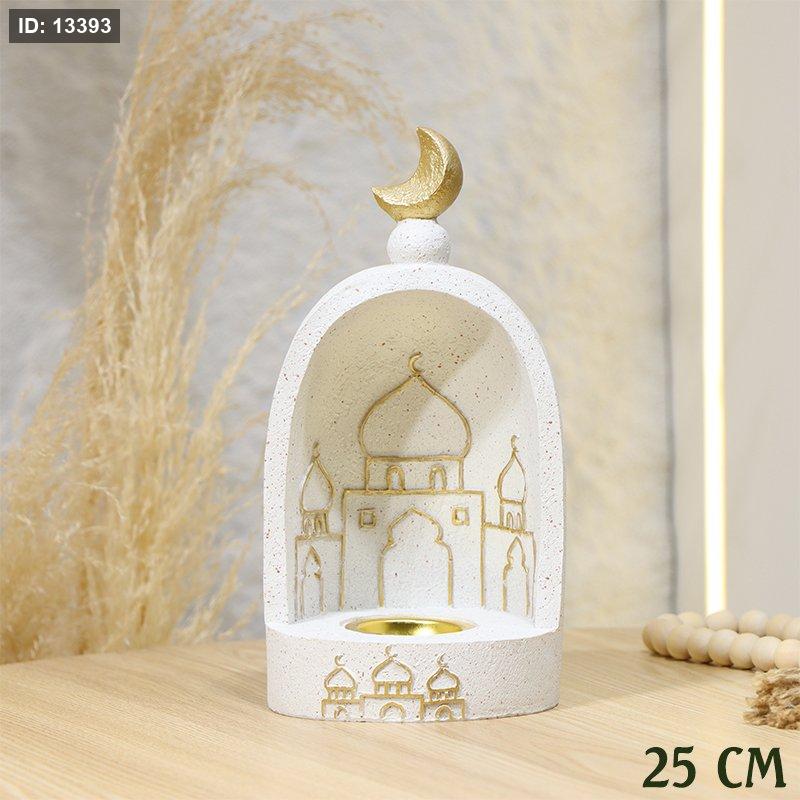 مبخرة فحم جبص بيج 25سم بيضاوي مرسم مسجد مسكة هلال ذهبي EL95/9 =ط58