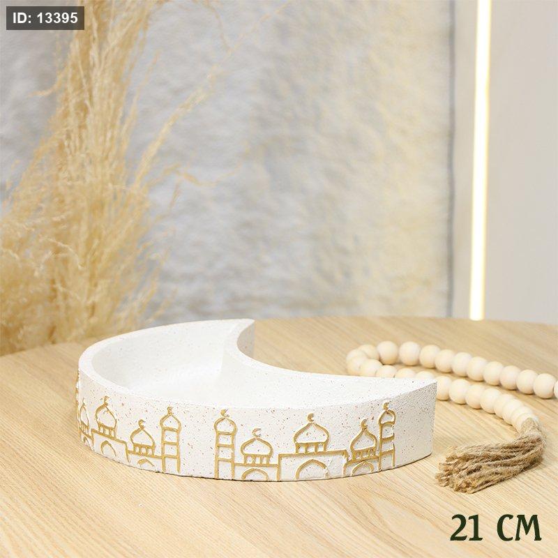 مضيفة جبص بيج 21سم شكل هلال مرسم مسجد ذهبي EL95/11 =ط58