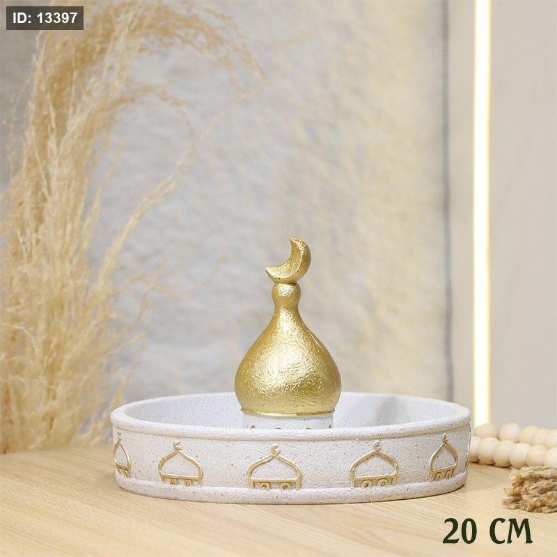 صحن قطايف جبص بيج مدور 20سم مسكة قبة ذهبي EL95/13 =ط58