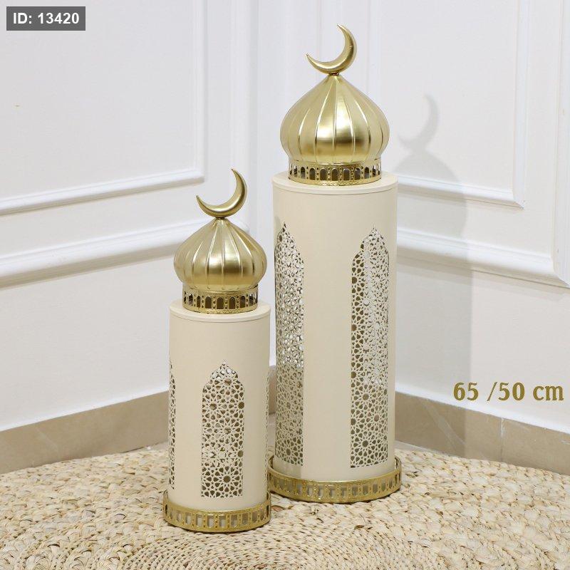 طقم مأذنة رمضان/2 احجام مدور 65/50سم تنك بيج وذهبي قبة وهلال ذهبي EL91/4 =رم1