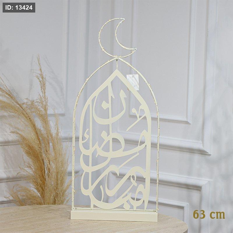 فانوس رمضان 63سم تنك بيج مكتب رمضان مبارك اضاءة بطاريات ذهبي EL91/8 =رم1