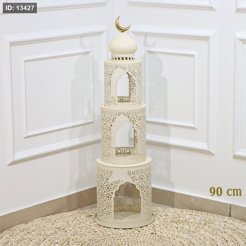 فانوس رمضان مدور 3 طبقات 90سم تنك بيج وذهبي قبة بيج وهلال ذهبي EL91/11 =رم1