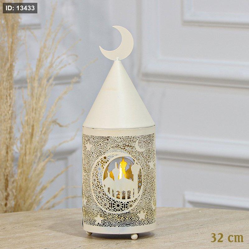 تحفة شكل مأذنة 32سم مخروط تنك بيج اضاءة لمبة بطاريات مسكة هلال EL91/17 =رم1