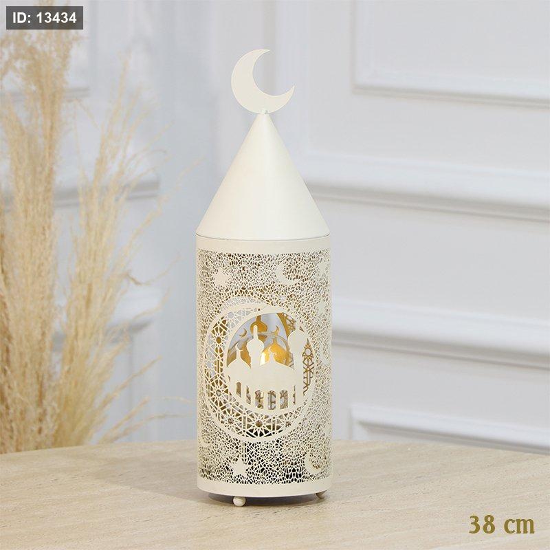 تحفة شكل مأذنة 38سم مخروط تنك بيج اضاءة لمبة بطاريات مسكة هلال EL91/18 =رم1