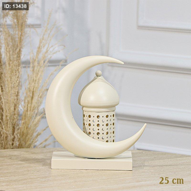 تحفة شكل هلال ومأذنة 25سم تنك بيج اضاءة ذهبي بطاريات EL91/22 =رم1