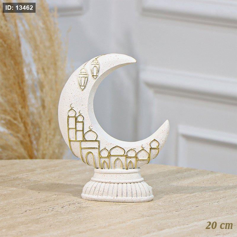 تحفة شكل هلال رمضان 20سم جبص بيج مرسم مسجد ذهبي EL94/4 =رم1 =رم2