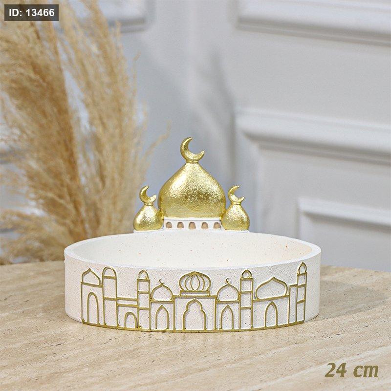 مضيفة بيضاوي 24سم جبص بيج مرسم هلال ذهبي مسكة قبة EL94/8 =رم2
