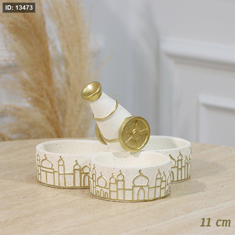 مضيفة مكسرات 3عين مدور 11سم جبص بيج مسكة مدفع رمضان EL94/15 =رم2