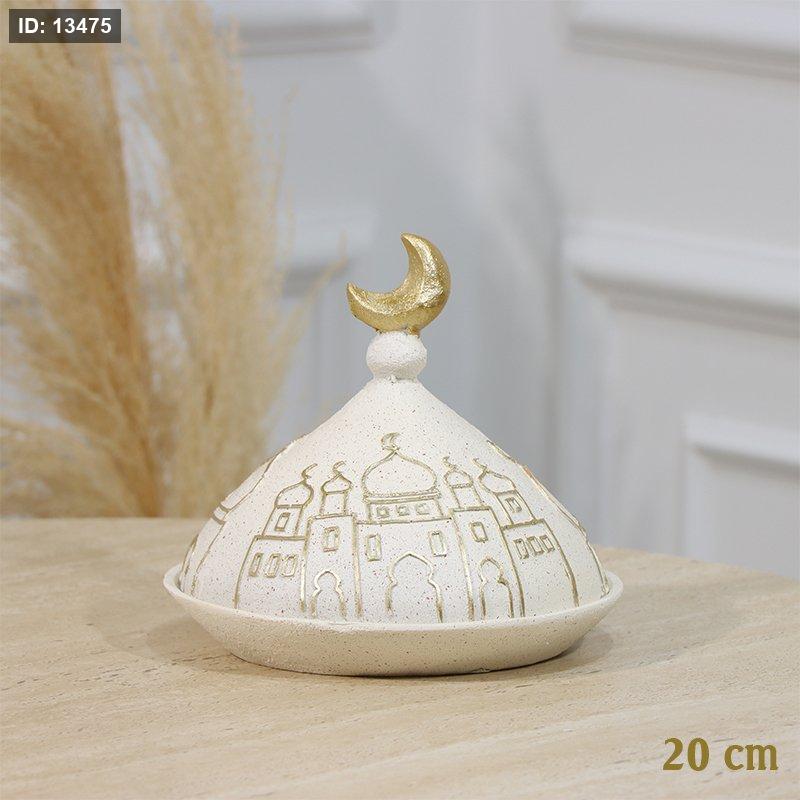 مضيفة مدور 20سم جبص بيج وغطا قبة مرسم مسجد ذهبي مسكة هلال EL94/17 =رم2