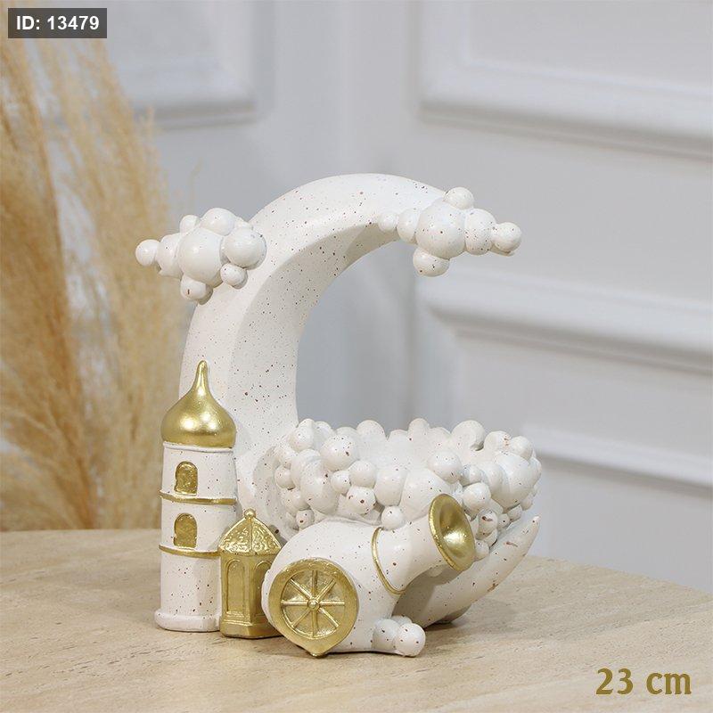 مضيفة مدور 23سم جبص بيج شكل هلال ومسجد ومدفع وفانوس رمضان EL94/21 =رم2