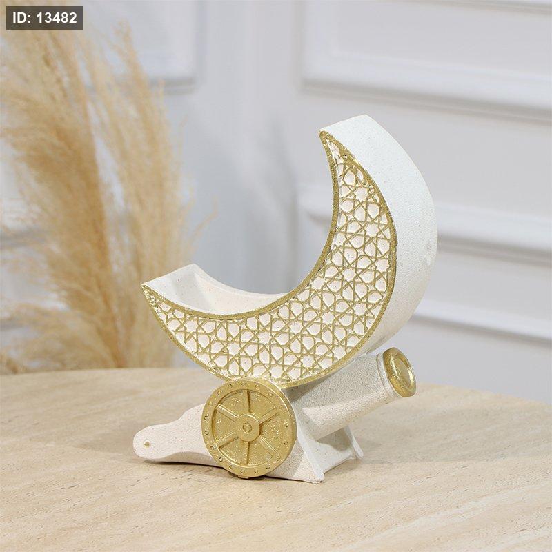 تحفة هلال جبص بيج قاعدة مدفع رمضان مرسم شبك ذهبي EL94/24 =رم2