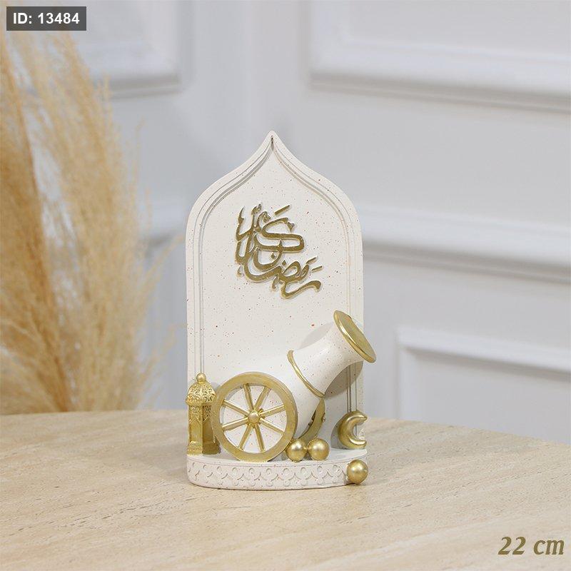 تحفة جبص 22سم شكل محراب و مدفع ومكتب رمضان كريم بيج وذهبي EL94/26 =رم2