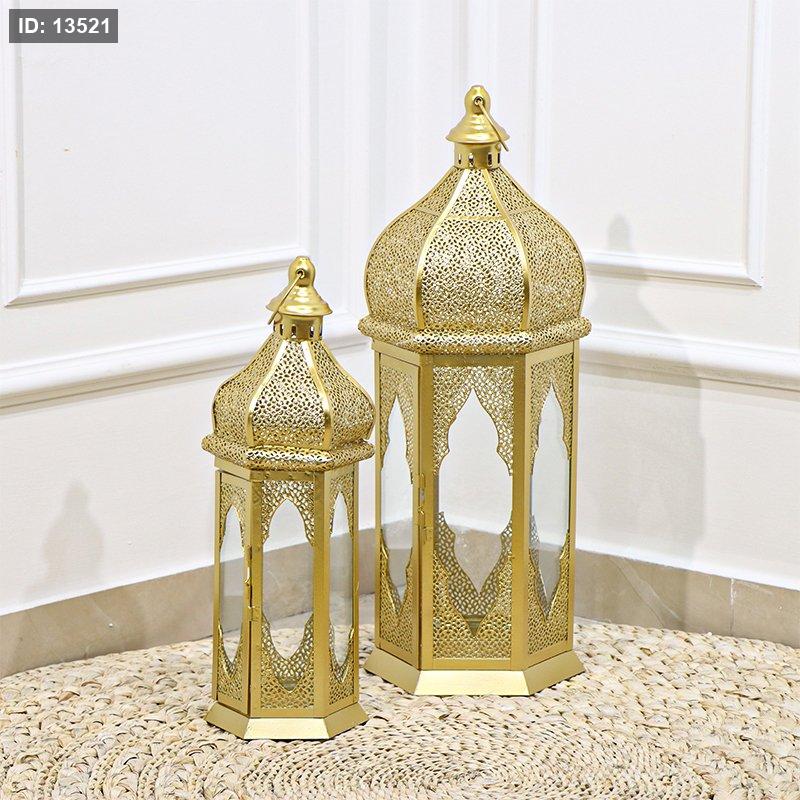 طقم فانوس رمضان /2 احجام شكل مأذنة سداسي تنك ذهبي قبة كبير EL16/6 =رم2