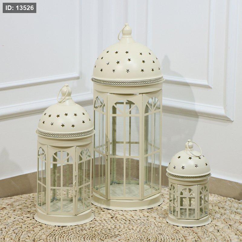 طقم فانوس رمضان /3 احجام شكل مأذنة مدور تنك بيج قبة كبير نجوم EL16/10 =رم2