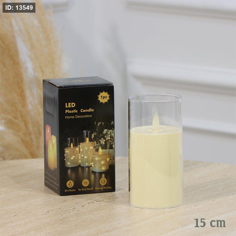 شمعة اكرلك شفاف مدور 15سم اضاءة بطاريات EL30/3 =رم2