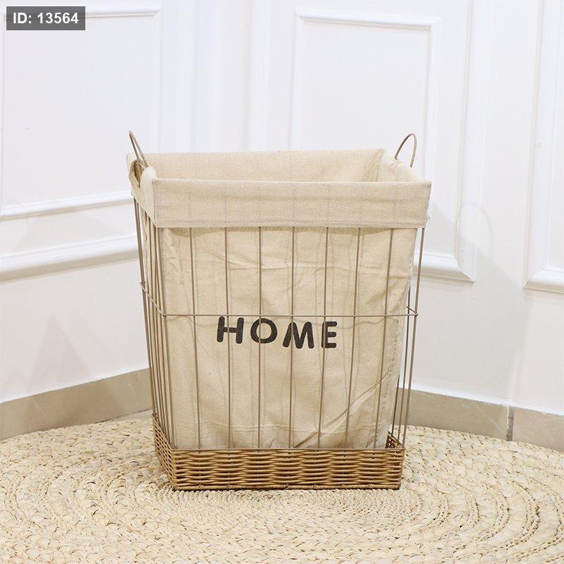 سلة غسيل مستطيل حديد بيج قاعدة قصب عسلي وجه قماش مكتب هوم EL92/4 =رم1