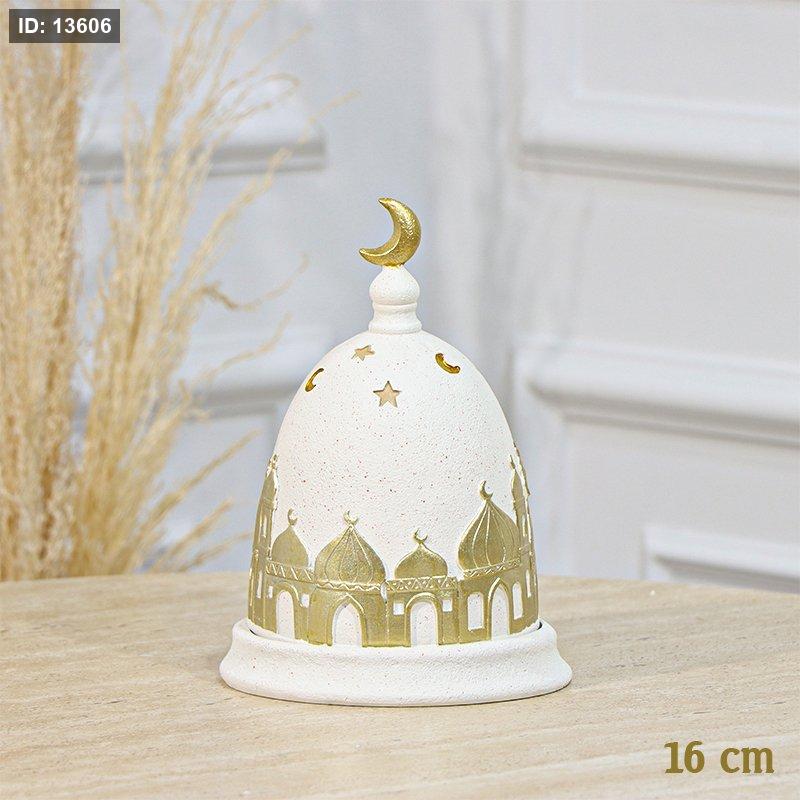 مضيفة مدور 16سم جبص بيج غطا قبة مرسم مسجد ذهبي مسكة هلال EL94/56 =رم1