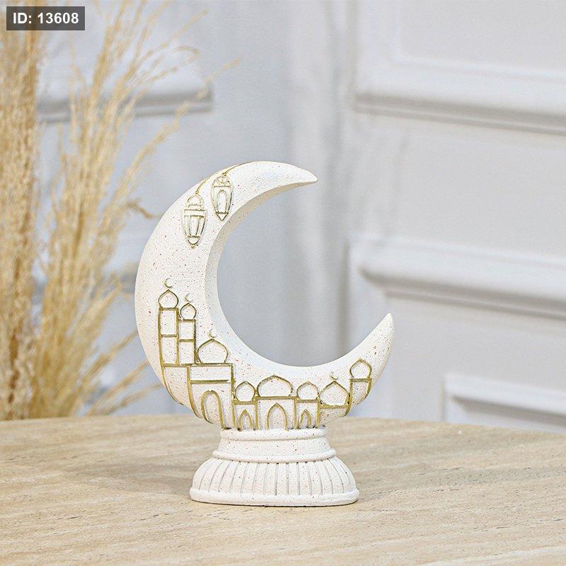 تحفة شكل هلال رمضان 20SL جبص بيج مرسم مسجد ذهبي EL94/4 =رم1