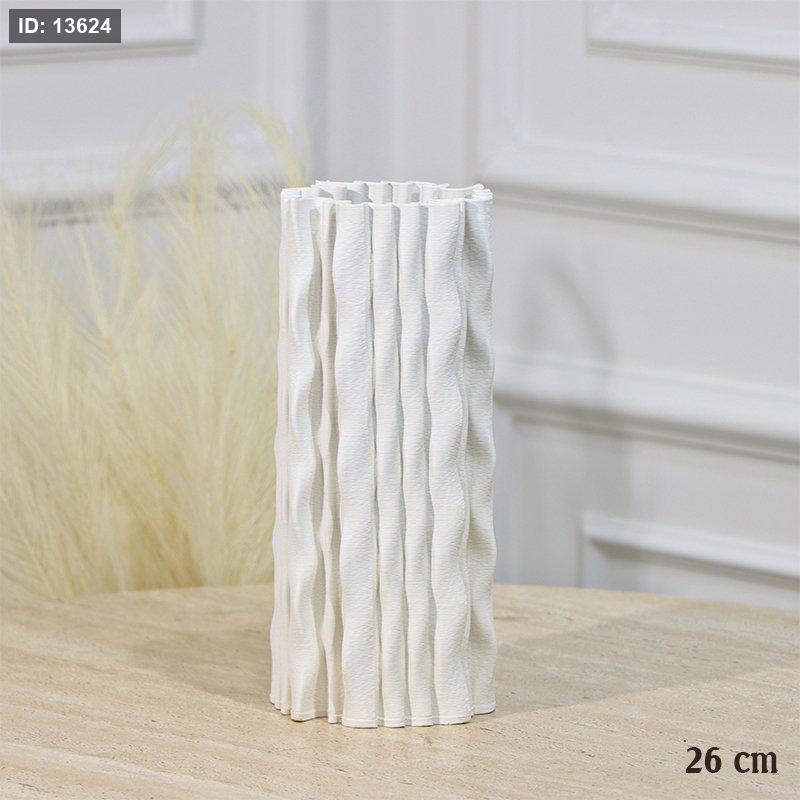 فازة جبص ابيض 26سم شكل اسطواني محزز حيف معرج EL87/4 =رم3