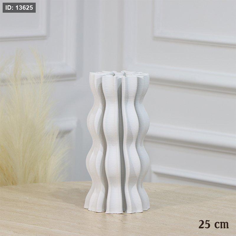 فازة جبص ابيض 25سم شكل اسطواني محزز حيف معرج EL87/5 =رم3