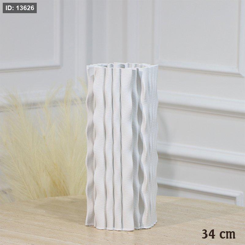 فازة جبص ابيض 34سم شكل اسطواني محزز حيف معرج EL87/6 =رم3